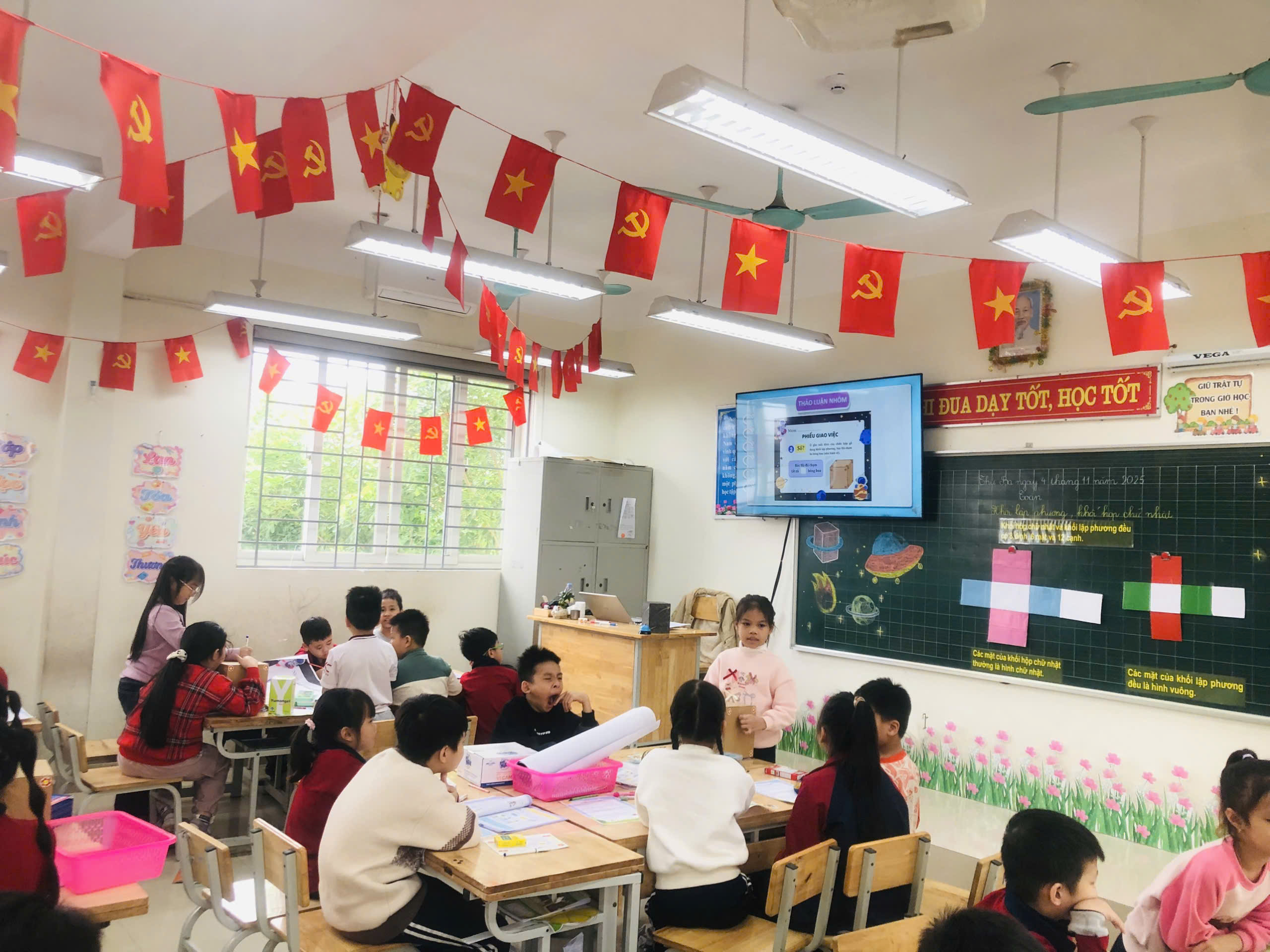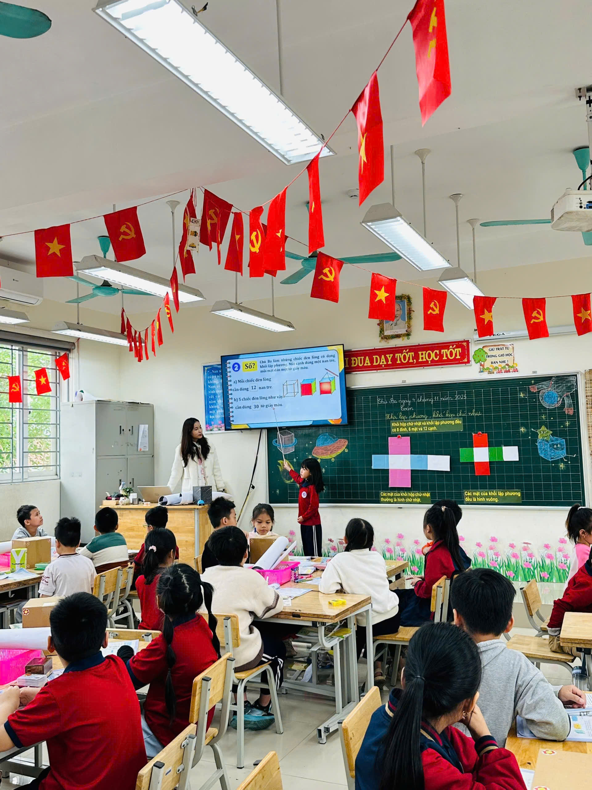 Ngày 4/11/2025, cô giáo Hoàng Diệu Linh hội giảng môn Toán, bài: Khối lập phương, khối hộp chữ nhật. Là một giáo viên trẻ, cô Linh đã đem sức trẻ, sự sáng tạo,nhiệt huyết, phong cách mới mẻ cùng vỡi việc ứng dụng CNTT khéo léo, phương pháp dạy học linh hoạt, cô và trò lớp 3A1 có một tiết dạy thành công.