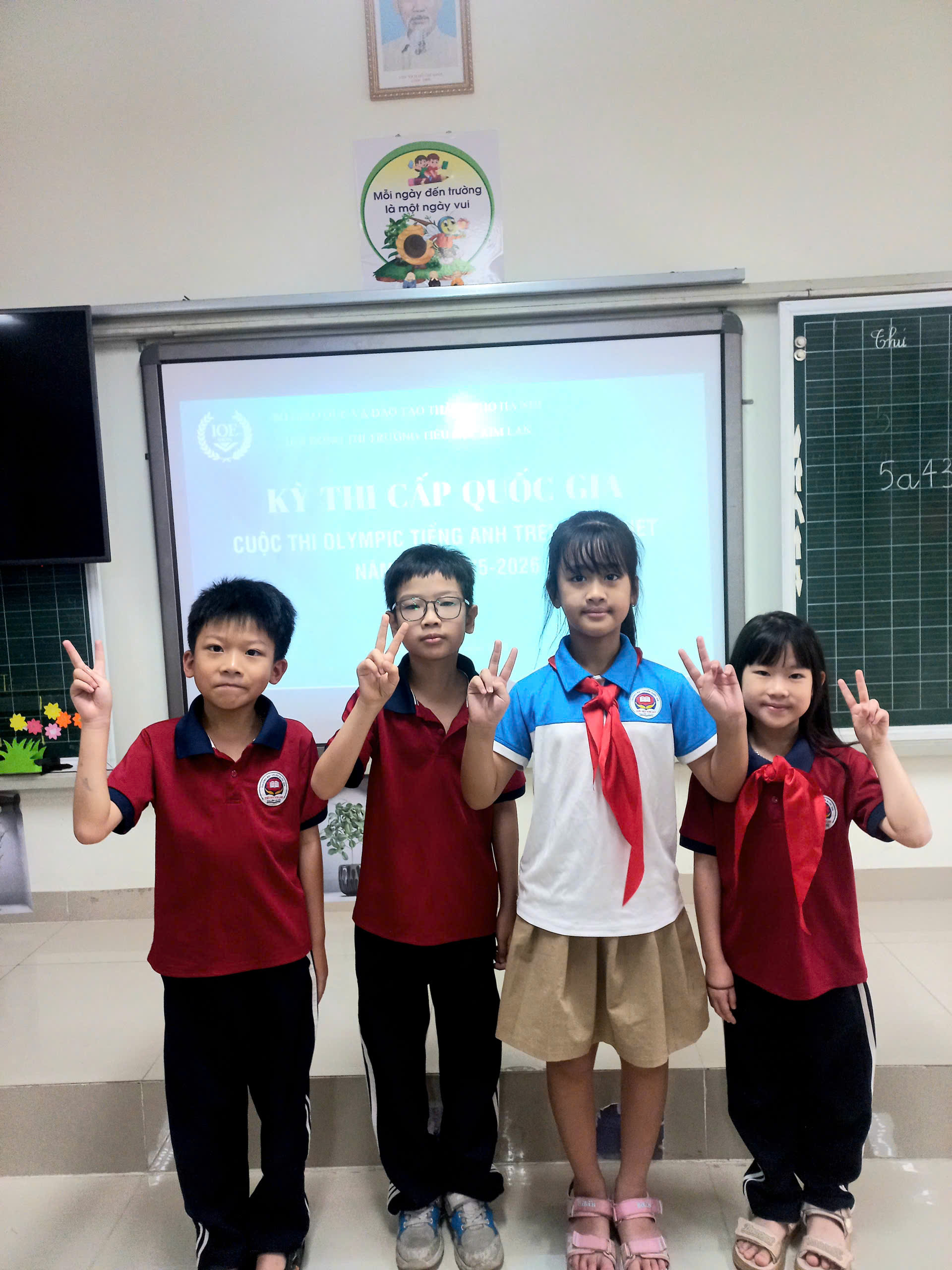 Năm học này, nhà trường có 4 học sinh khối 3 vinh dự đại diện tham gia sân chơi trí tuệ cấp quốc gia. Với sự nỗ lực, chăm chỉ ôn luyện cùng tinh thần tự tin, các em đều đạt số điểm trên 1000, thể hiện năng lực tiếng Anh vững vàng và bản lĩnh thi đấu tốt. Tiêu biểu, em Nguyễn Minh Khôi – học sinh lớp 3A2 đạt 1730 điểm. Thành tích của các em không chỉ là niềm tự hào của gia đình mà còn là nguồn động lực lớn cho các bạn học sinh trong toàn trường.